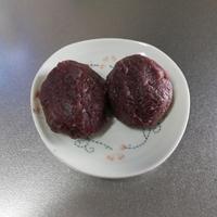 - 6 手に水をつけ、4を薄く広げ、中央にきな粉おはぎ用の3をのせて包みます。同様に4個作ります。
