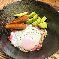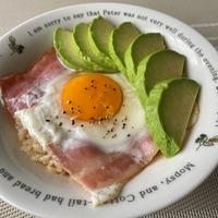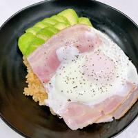 ベーコンエッグをご飯にのせて、簡単豪華なランチに! バター醤油の香りが食欲をそそるご飯と、とろーり卵が絶妙にマッチ! アボカドとごはんもとっても合うんです! ぜひ、ランチなどに作ってみてはいかがでしょうか。