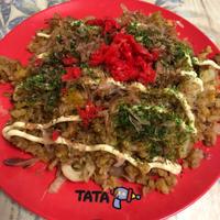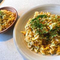 えびがなかったのでシーフードで。なんか思っていた味とちがってました…マヨネーズが入ってない方がおいしいです。それから、揚げ玉は最後に入れたほうがカリカリ感があっておいしいです。