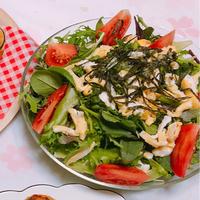 - 8 仕上げにドレッシングときざみのりをかけたら完成です。