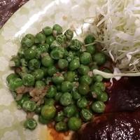 グリーンピースといえば、豆ご飯、煮物、他にはずんだ餡くらいしかレパートリーがありませんでしたが、こうやって炒めるというのは新鮮でした。