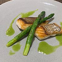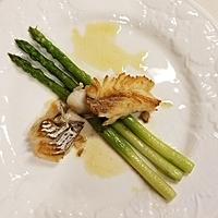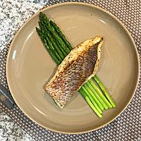 油を多めにして皮をパリッと仕上げ最後少しレモン果汁も加えました!アスパラの代わりに菜の花を使いました。皮目が香ばしく美味しかったです!
