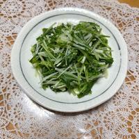 - 1 鍋にお湯を沸かして塩を加え、水菜を2分ほど茹でて冷水に放し、よく絞ります。