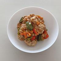 キャベツたっぷり肉団子の甘酢あんのご紹介です。キャベツをたっぷり入れた肉団子に、甘味のあるケチャップ入りの甘酢あんを絡めて仕上げました。キャベツをたっぷり入れてますので、かさ増し料理の一品にもなりますよ。今回は彩りのよいピーマンと赤パプリカを加えていますが、お好みの野菜を入れるとアレンジが広がります。ぜひお試しくださいね。