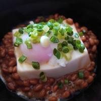 「納豆温玉のせ冷奴」の作り方を簡単で分かりやすいレシピ動画で紹介しています。