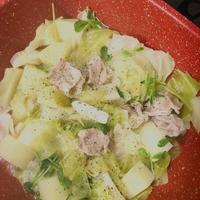ジャガイモの代わりにもやしとキャベツで!