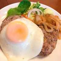 目玉焼きの焼き加減は半熟や固焼きなどお好みにしてください。 焦げやすいので火加減を調整してください。 手順2.3ではフライパンに残った肉汁を使用するので、洗わずにそのまま調理します。 グレイビー風ソースの煮詰め具合は焦げない程度で加減してください。