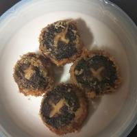 - 3 2の1/8量を1の笠に付け、薄力粉、溶き卵、パン粉の順番に衣を付けます。