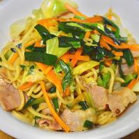 - 5 4に中華麺と水を加えて炒め、水分を飛ばします。