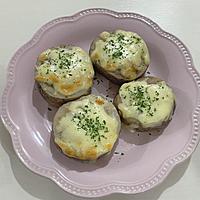 チェダーチーズにしてみました!レンコンを水平にしないとチーズが落ちてしまうので、最初に切る際丁寧に整えた方が良いです。