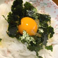 - 5 器に4を盛り付け、2と桜えびと卵黄をのせ、3をかけたら出来上がりです。