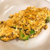 - 4 フライパンにバターを入れ中火で熱して、3を流し入れ菜ばしでかき混ぜ、2も入れて半熟状に仕上げます。