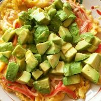 カニカマとアボカドの卵とじはいかがですか。卵とアボカドの組み合わせは珍しいかもしれませんが、ねっとりとした濃厚なアボカドと半熟状の卵がとても美味しいです。白いご飯にかけてどんぶりにしても美味しいので、ぜひ試してみてください。