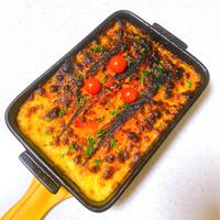 スキレットでこんがりチーズ 鮭のトマト煮 レシピ・作り方