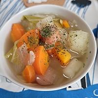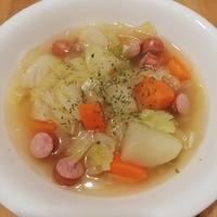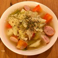 - 1 水を入れた鍋にキャベツ、じゃがいも、にんじん、玉ねぎを入れ、中火にかけて、全体に火が通るまで煮込みます。