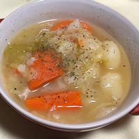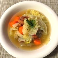 生姜を効かせた野菜スープのご紹介です。野菜をたっぷり入れたコンソメベースのスープに、生姜をすりおろして煮込みました。お好みの野菜を入れるとアレンジが広がります。寒い日や体を温めたい時に、ぜひお試しくださいね。