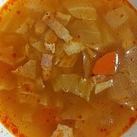 オリーブオイルないため、サラダ油で炒めた。だからか、スープの脂が気になった…。