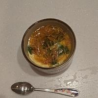 - 3 耐熱容器に流し入れラップをし、200Wの電子レンジ10分程、卵が固まるまで加熱します。