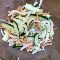 長ネギをキュウリに変えて、人参でアクセントをつけました。ザーサイと大根って合うんですね(笑)