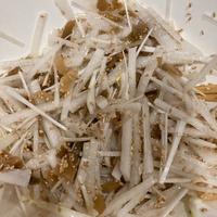 - 1 大根は皮をむき、千切りにします。