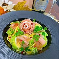 アボカドと生ハムの和風クリームパスタのご紹介です。クリーミーなアボカドとクリームパスタの相性は抜群です。そこに、わさびの辛味が加わってアクセントになり、とってもおいしいですよ。ぜひ、お試しくださいね。
