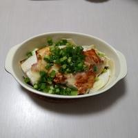 - 6 塩サバに火が通ったら、器に盛り付けて、小ねぎをかけたら完成です。
