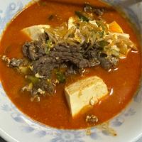 ユッケジャンって食べたことがなかったんですが、ラー油でだいぶ辛かったです。具だけ食べて汁気は飲む気がしませんでした。