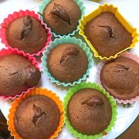 子どもはスパイスを嫌うので、ココア大1で代用し、残っていたバナナを2本使いました。材料混ぜるだけで、とっても簡単!最後にチョコチップも散らしました♡