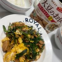 初の大豆ミート料理。ニラは好みで少なめ、余っていた卵白1個分を追加で玉子多め。味付けがめっちゃ美味しい。想像より肉々しくて大豆ミートを好まない旦那が意外と食べてた✏️