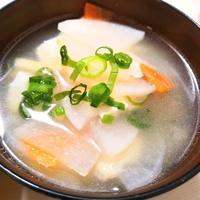 - 1 大根は薄いいちょう切りに、にんじんは薄い半月切りにします。