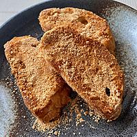 油は2倍量以上で、砂糖はグラニュー糖、きな粉に塩をひとつまみ加えました。簡単でとても美味しいです。賞味期限間近のパンでも美味しく焼けました。