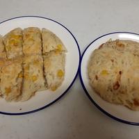 コーンの水切りが不十分だったようで、パン生地の水分が多くなりベタつく生地に為ってしまいました