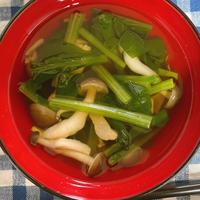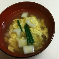 小松菜もしめじも使い切ったばかりなので無いけど、はんぺんのお汁が一品欲しいので卵で作りました。とても美味しかったです😋😋