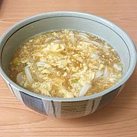 - 3 弱火でひと煮立ちさせたら溶き卵を回し入れ、菜箸で混ぜながら卵に火が通るまで加熱し、火から下ろします。 卵が少し固まり始めてから混ぜると、ふんわりと仕上がりますよ。