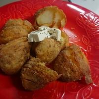 じゃがいも サクサク、味付けは、にんにく塩こしょうで! クリームチーズとも 合います!子供も大好きになりました!リピ決定です。