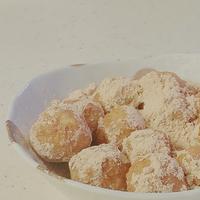 - 5 お湯につけ、1をまぶします。