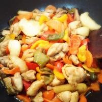ニンジン、ピーマン、赤、黄色パプリカも入れて彩り鮮やか~になりました!美味しかったですー