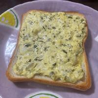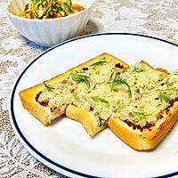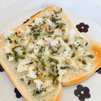 タルタルソース風の具材をのせたトーストです。大葉の香りと玉ねぎの辛みがアクセントになった、大人な味わいの一品です。朝食やランチにはもちろん、一口サイズに切ってお酒のおつまみにもいかがでしょうか。ぜひお試しくださいね。