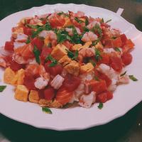 簡単ちらし寿司はいかがでしょうか。サーモンやマグロ、エビなどの具材をごろっと大きめに切り、見た目にも華やかで食べ応えのある一品に仕上げました。お好みの具材でアレンジも楽しめますよ。ホームパーティーなどのおもてなし料理にもぴったりなので、ぜひお試しくださいね。