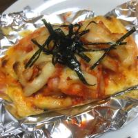 - 5 火から下ろし、お皿に盛り付けます。キムチをのせてめんつゆをかけ、のりをのせて完成です。