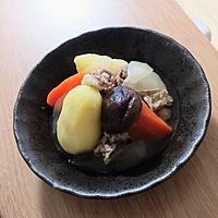 じゃが芋は煮くずれしにくいメークイーンを使い、先にレンジで加熱してから他の食材と合わせて煮込みました。上品な味わい😌
