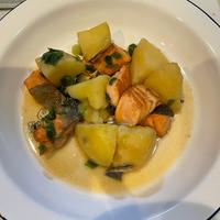 じゃがいもの代わりに、「ドラゴンレッド」というお芋で作りました。煮崩れせず、色も赤くて、煮込み料理にぴったりです。無塩バターを使ったので、塩気が控えめになりました。またリピートしたいです。