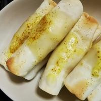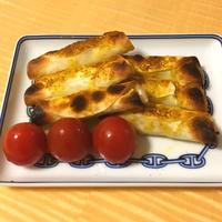 - 5 天板にアルミホイルを敷き、4を並べオリーブオイルをスプーンで塗ったら、カレー粉を茶漉しでふりかけます。オーブントースターで5分加熱し表面がパリッとしたら完成です。