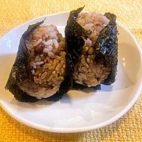 おにぎらず、混ぜたどんぶりのまま食べても美味しいです!笑