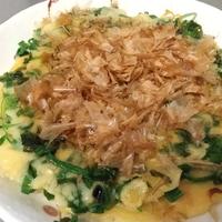 - 5 お皿に盛り付け、しょうゆを塗り、かつお節をかけて完成です。