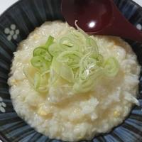 - 3 ごはん、(A)を入れ、弱火にしごはんがやわらかくなるまで5分程度煮ます。