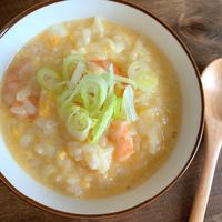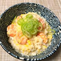ぷりぷりのエビの食感と旨味がアクセントの雑炊のご紹介です。生姜をたっぷり入れて、ポカポカと温まりますよ。ふんわり卵でボリュームもあり、時間がないときでも簡単にお作りいただけますよ。ぜひお試しくださいね。