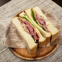 パストラミのハーブサンドイッチのご紹介です。贅沢にパストラミをたっぷり挟み食べ応え十分なサンドイッチです。市販のパストラミを使用しているので、簡単に作ることができますよ。朝ごはんなどにぜひ、お試しくださいね。