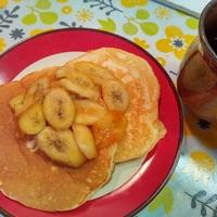 パンケーキは冷凍をチンして、バナナキャラメルだけ作りました。