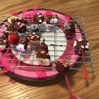 マシュマロとバナナでしました。チョコに水が入ってしまいうまく溶けず、電子レンジを使って溶かそうとしたら焦げてしまいました。(新しいチョコで再チャレンジしました。温めた牛乳を入れると溶けやすいらしいです)書いてある分量ですると結構チョコが余ると思います。またトッピングの時アザランを使うと食べたときアザランだけ口の中に残ってしまうので次するときは別のトッピングでチャレンジしたいです。